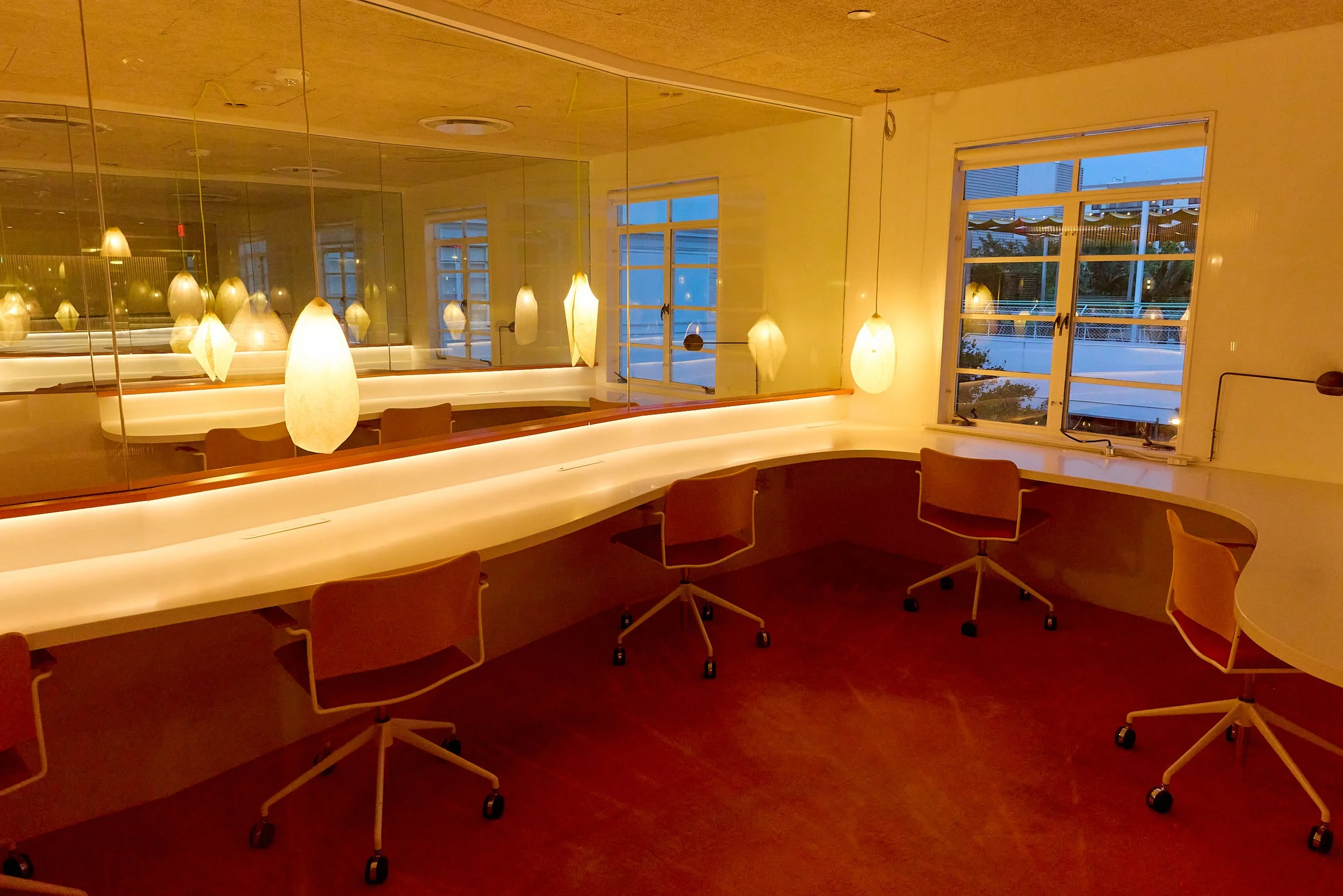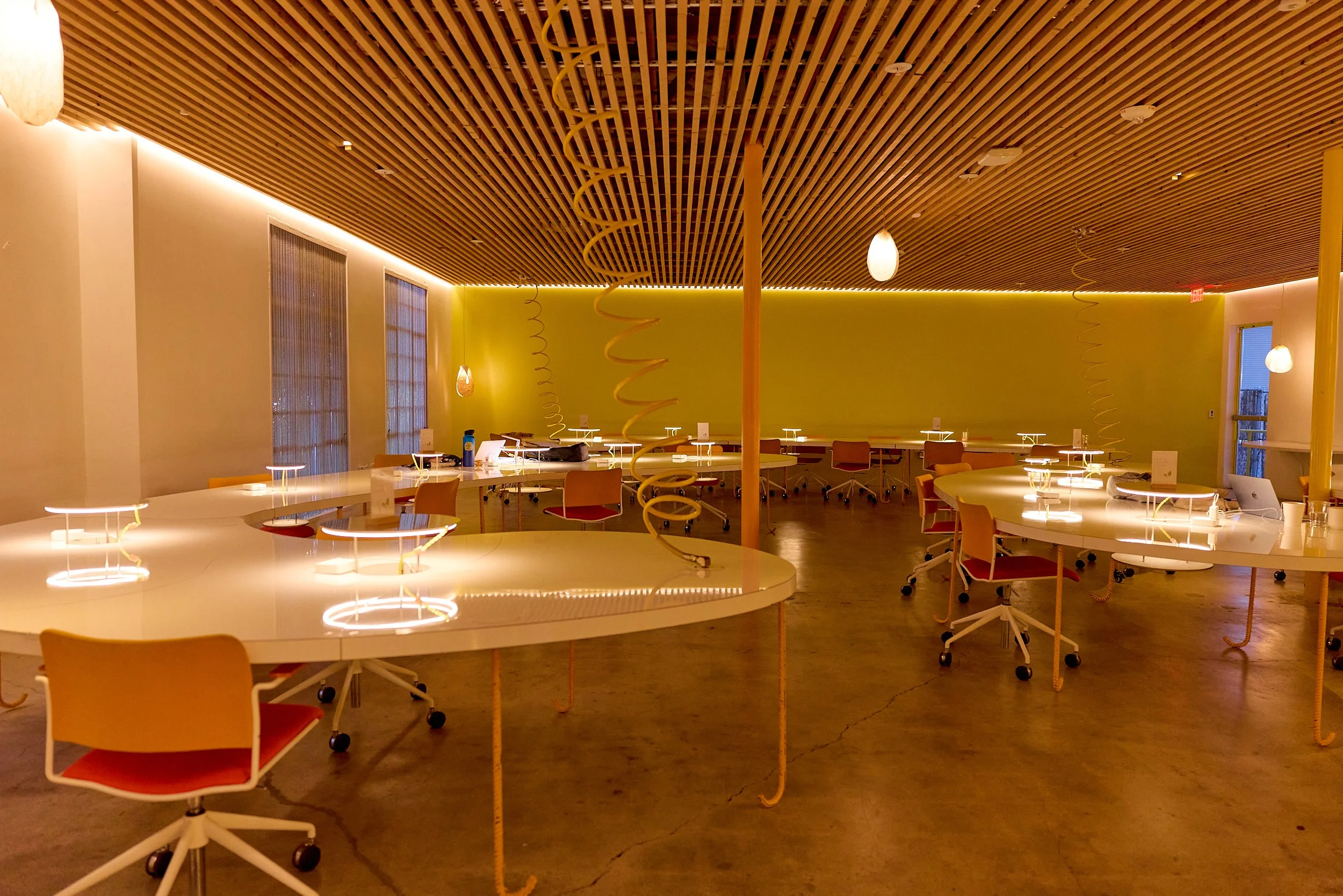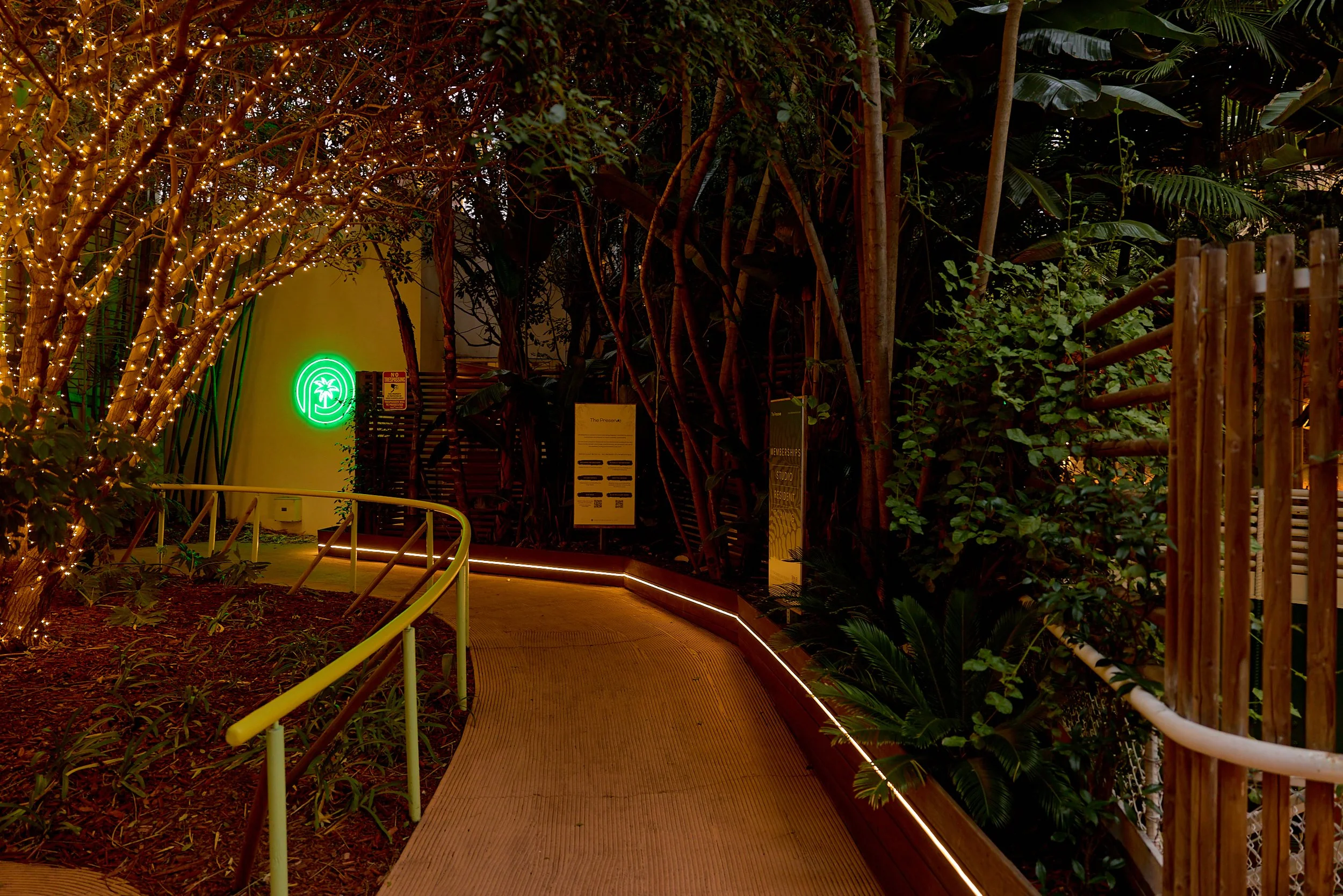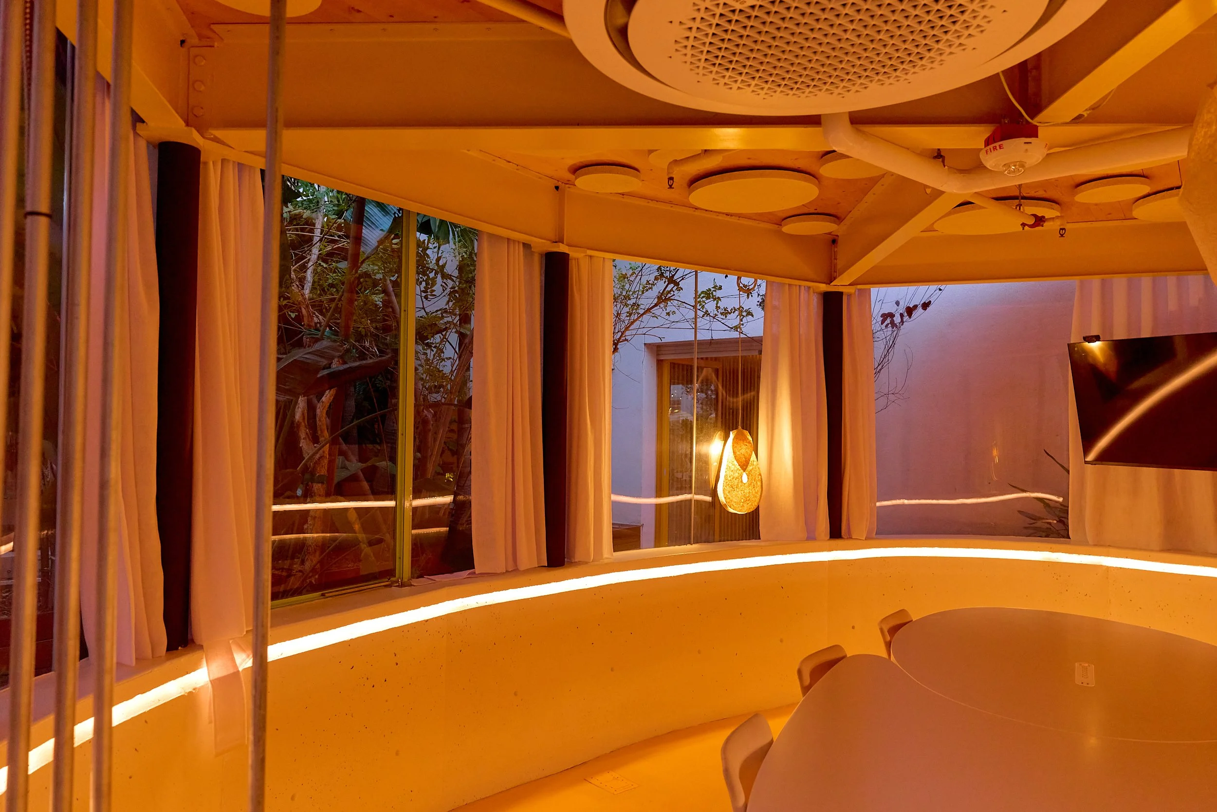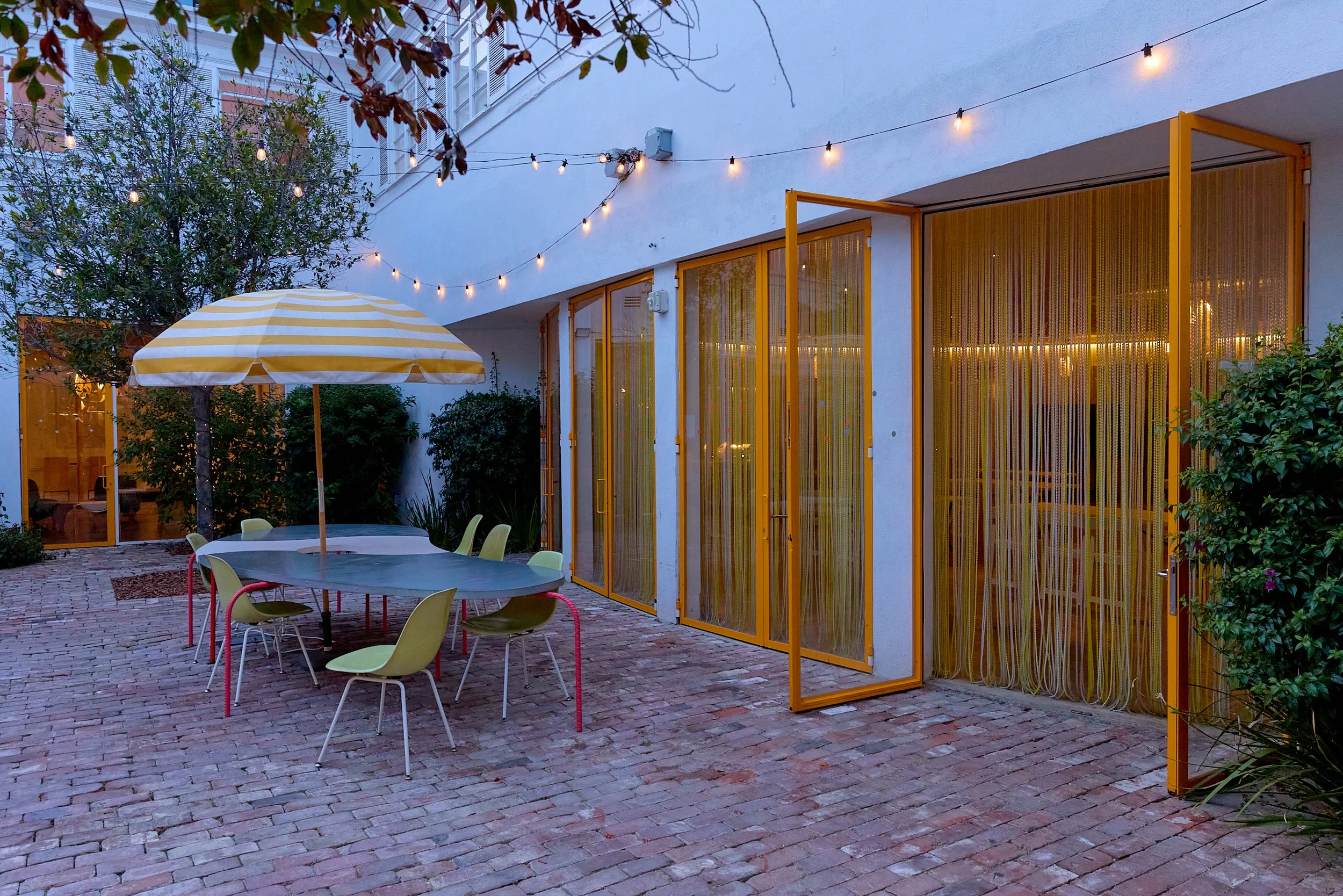 Two-acre creative campus designed by Spanish architect Jose Selgas (SelgasCano), integrated into a historic 1960s Paul Williams Colonial Revival office building. 50,000 sq ft landscaped garden 60 individual curved acrylic, freestanding garden studio office pods Restaurant and bar Tree-covered patio courtyard with fountain Auditorium Meeting rooms and breakout spaces Private offices On-site bookshop Interconnected pathways throughout campus Architecturally distinct: Mid-Century structure paired with contemporary Bauhaus-influenced design and futuristic acrylic pod installations Extensive natural light, layered outdoor environments, and multiple self-contained zones within one controlled campus setting.