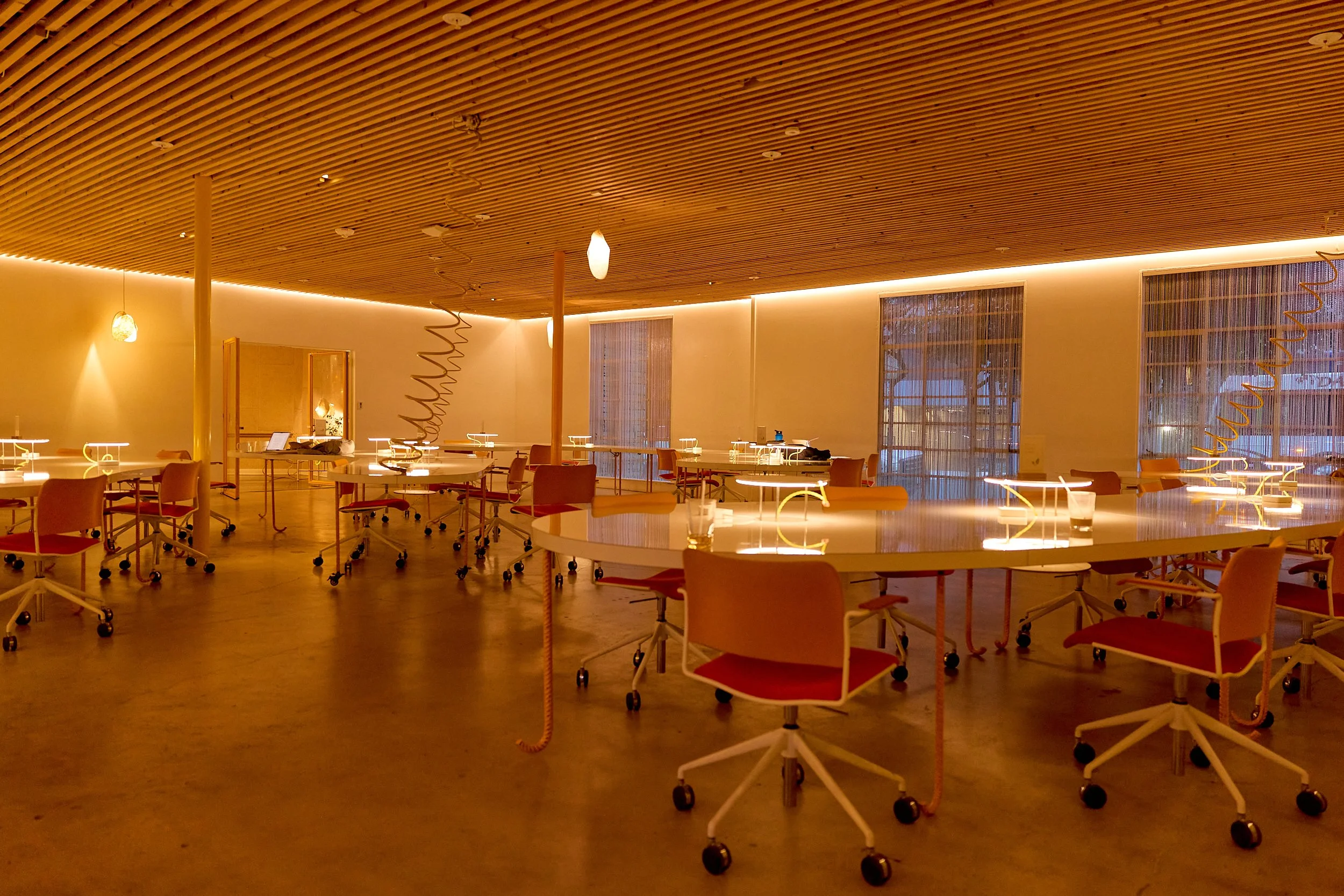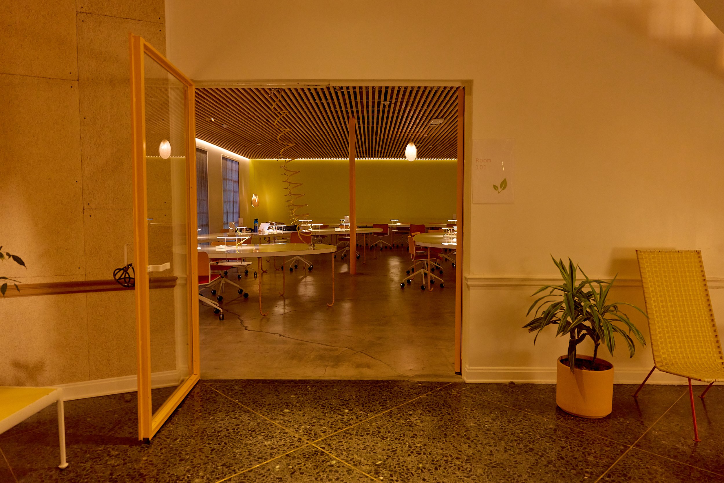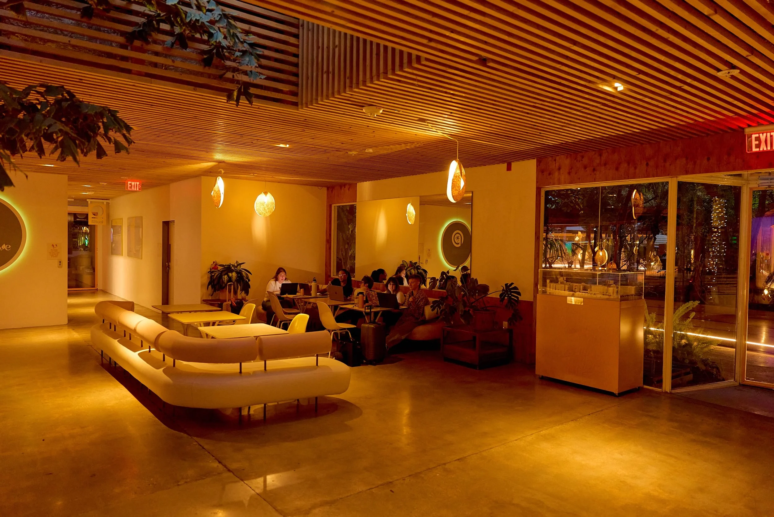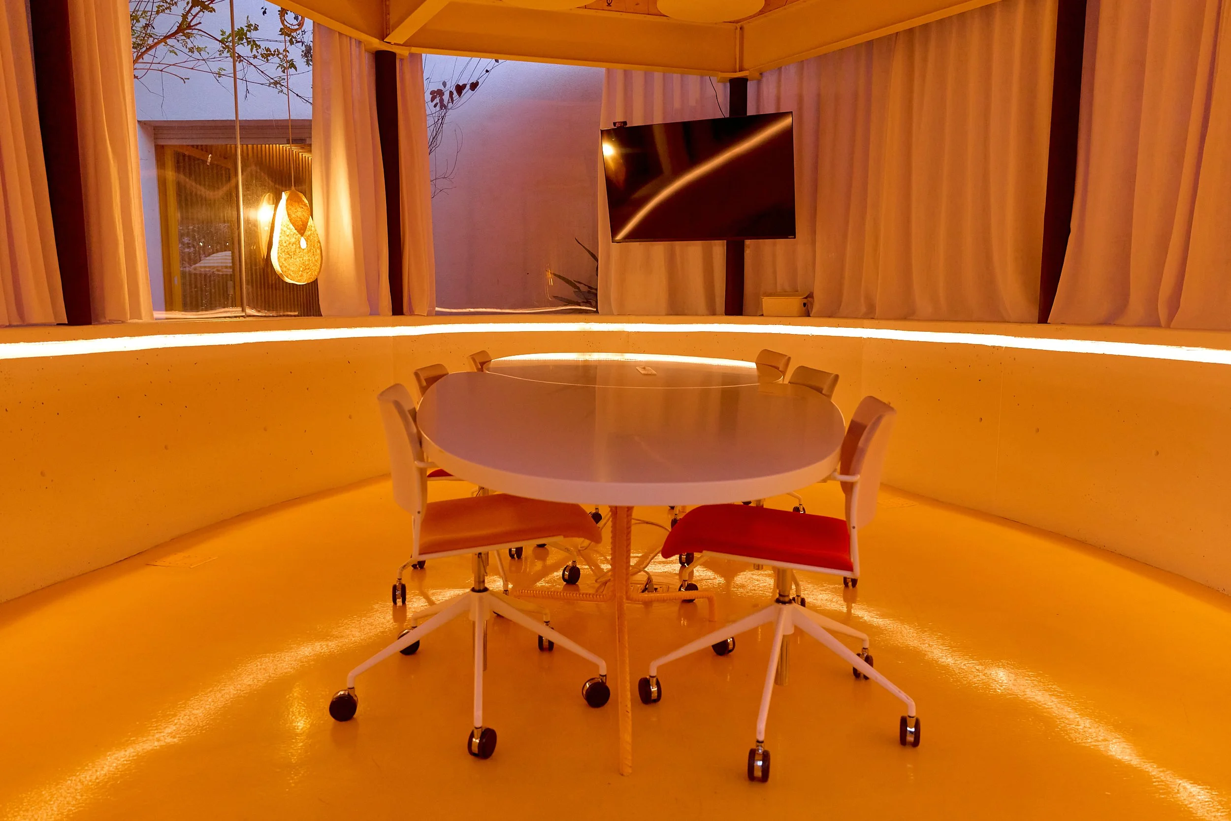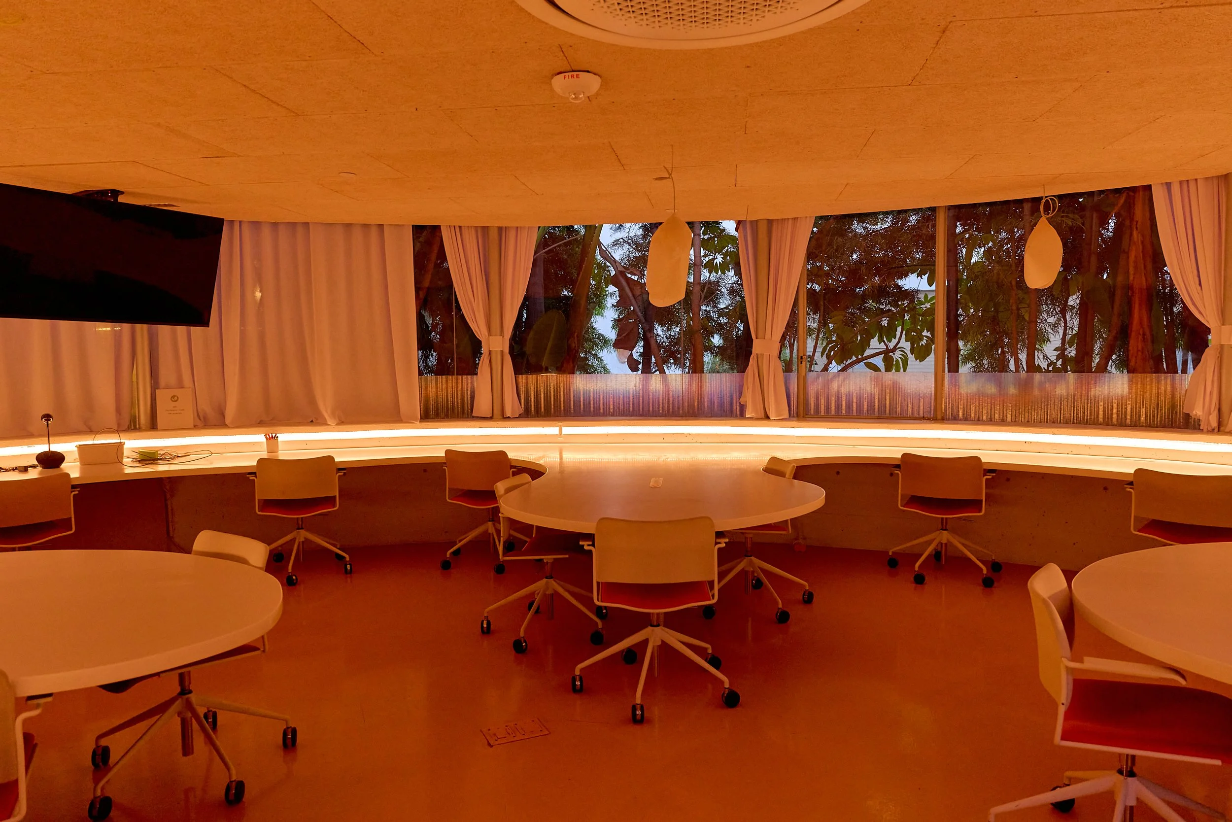 Two-acre creative campus designed by Spanish architect Jose Selgas (SelgasCano), integrated into a historic 1960s Paul Williams Colonial Revival office building. 50,000 sq ft landscaped garden 60 individual curved acrylic, freestanding garden studio office pods Restaurant and bar Tree-covered patio courtyard with fountain Auditorium Meeting rooms and breakout spaces Private offices On-site bookshop Interconnected pathways throughout campus Architecturally distinct: Mid-Century structure paired with contemporary Bauhaus-influenced design and futuristic acrylic pod installations Extensive natural light, layered outdoor environments, and multiple self-contained zones within one controlled campus setting.