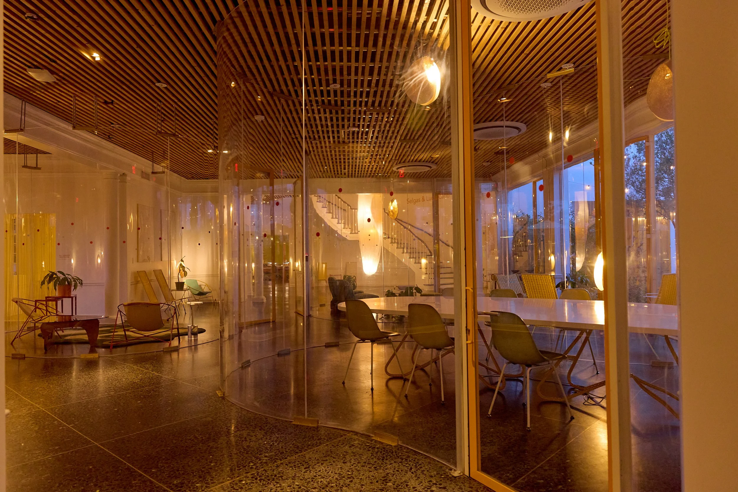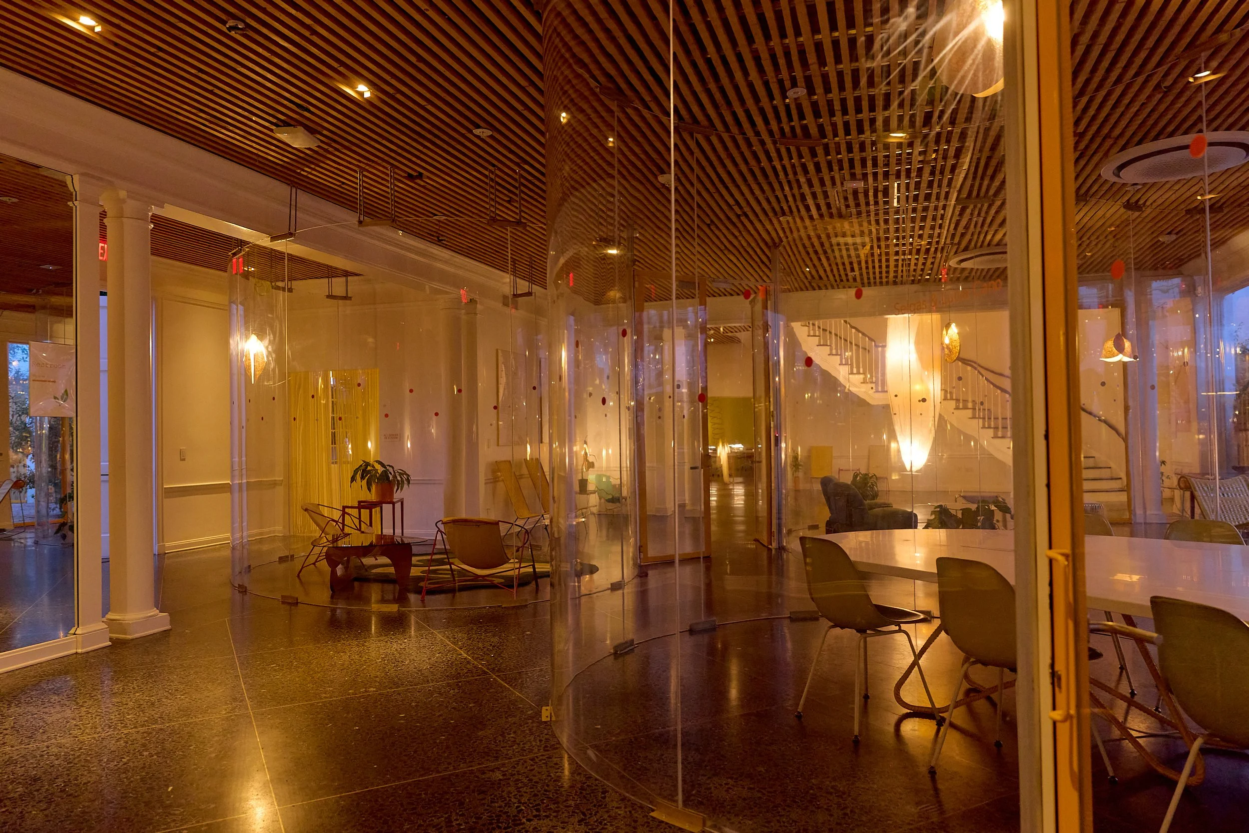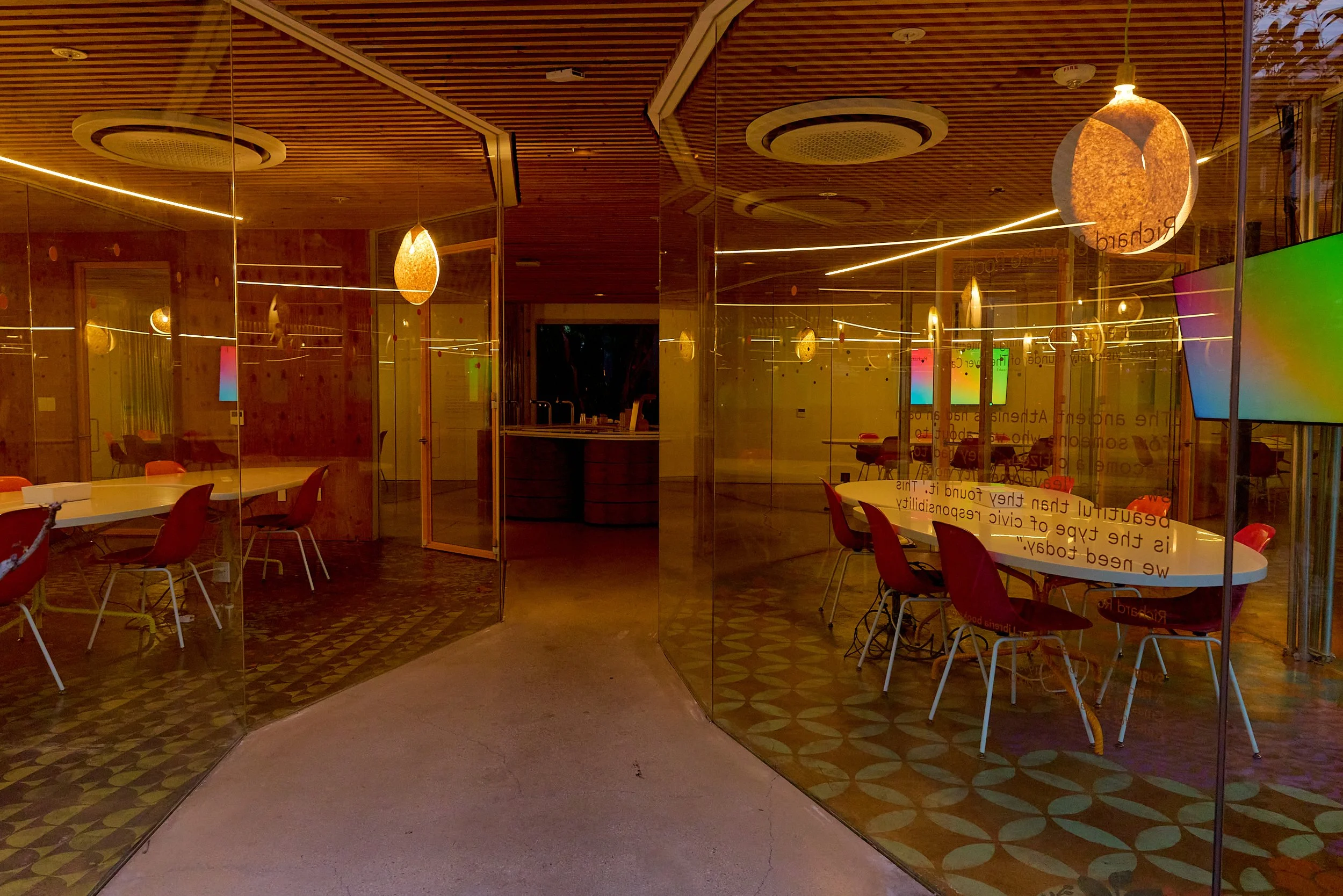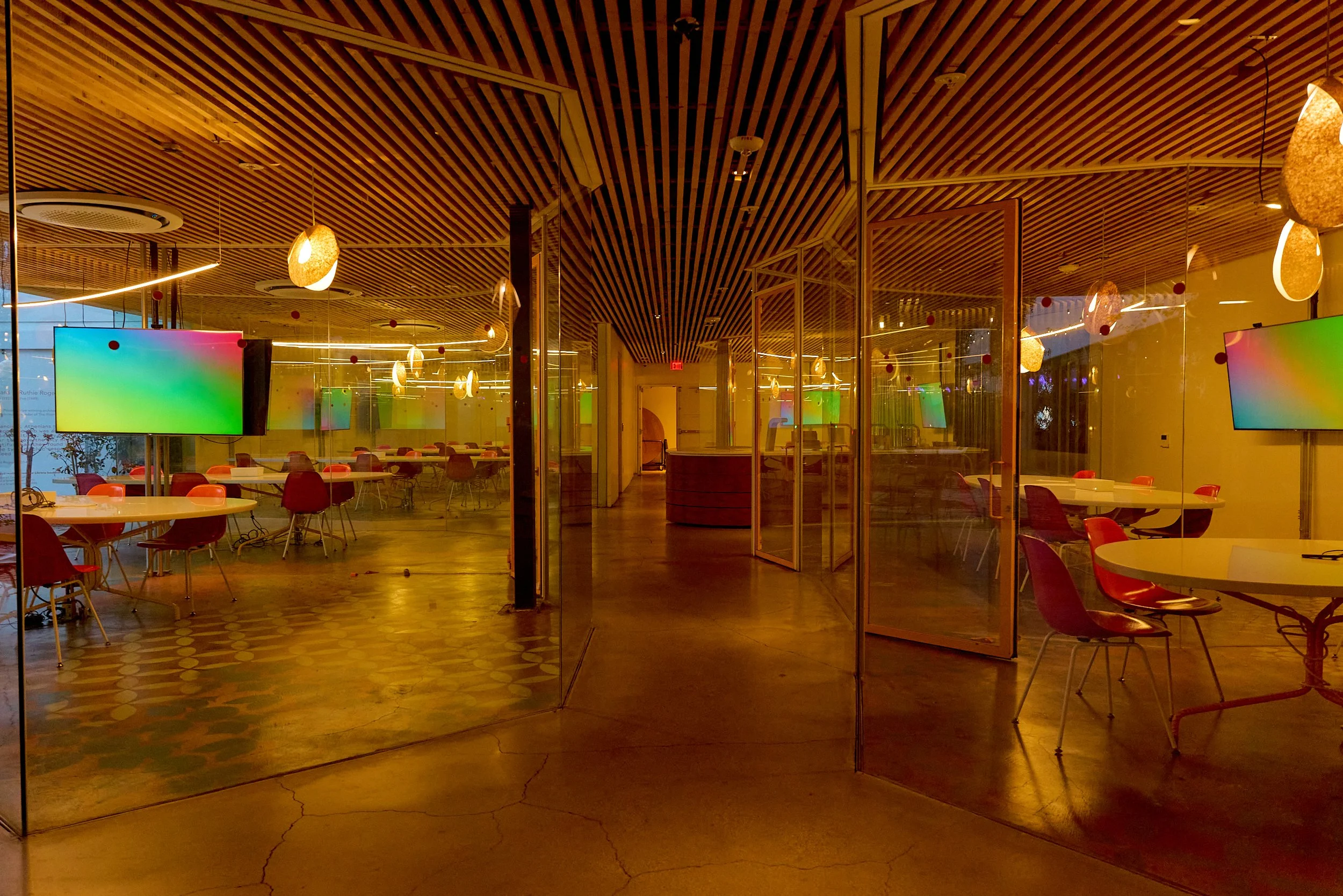 Two-acre creative campus designed by Spanish architect Jose Selgas (SelgasCano), integrated into a historic 1960s Paul Williams Colonial Revival office building. 50,000 sq ft landscaped garden 60 individual curved acrylic, freestanding garden studio office pods Restaurant and bar Tree-covered patio courtyard with fountain Auditorium Meeting rooms and breakout spaces Private offices On-site bookshop Interconnected pathways throughout campus Architecturally distinct: Mid-Century structure paired with contemporary Bauhaus-influenced design and futuristic acrylic pod installations Extensive natural light, layered outdoor environments, and multiple self-contained zones within one controlled campus setting.