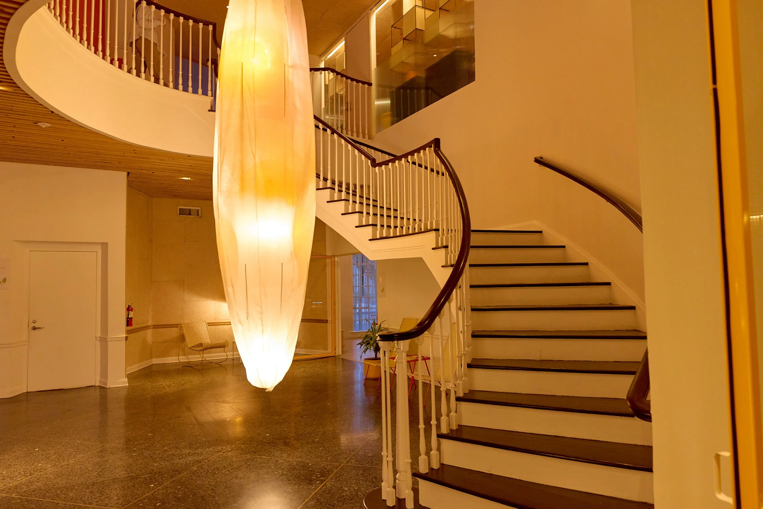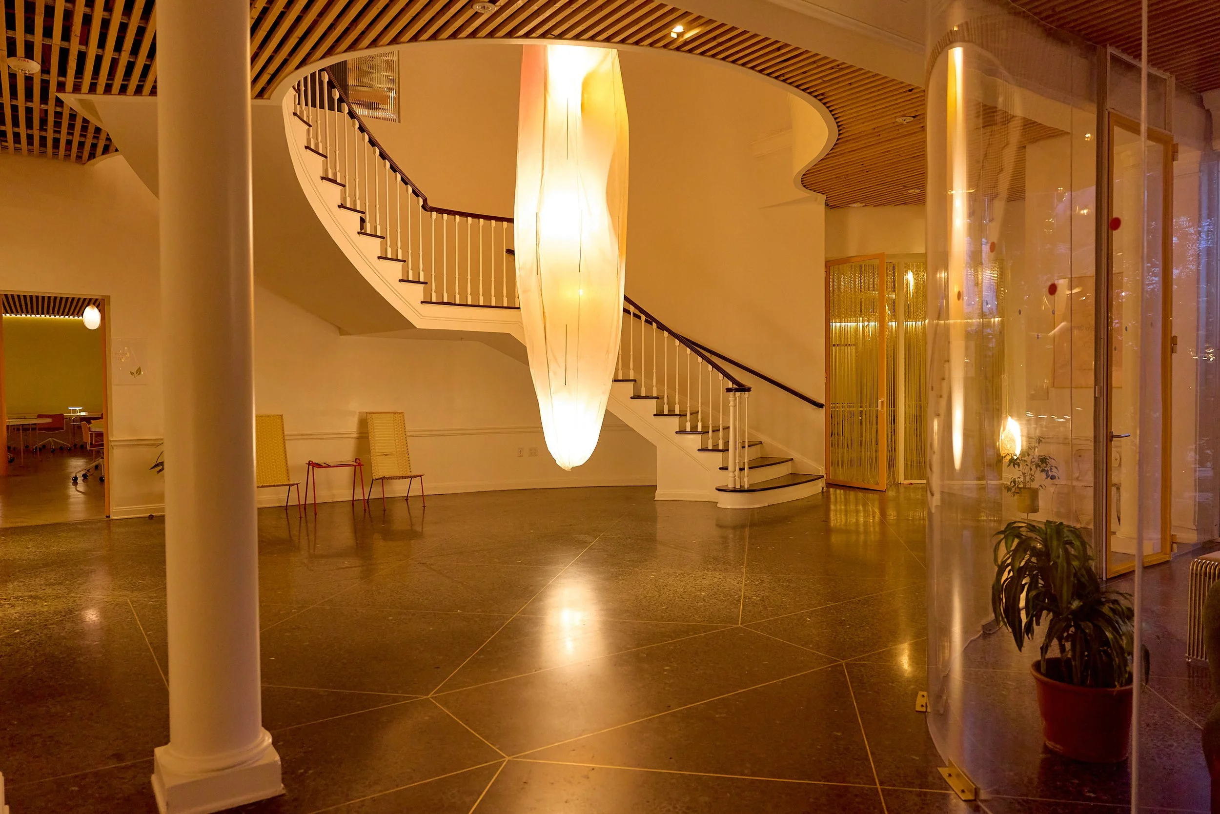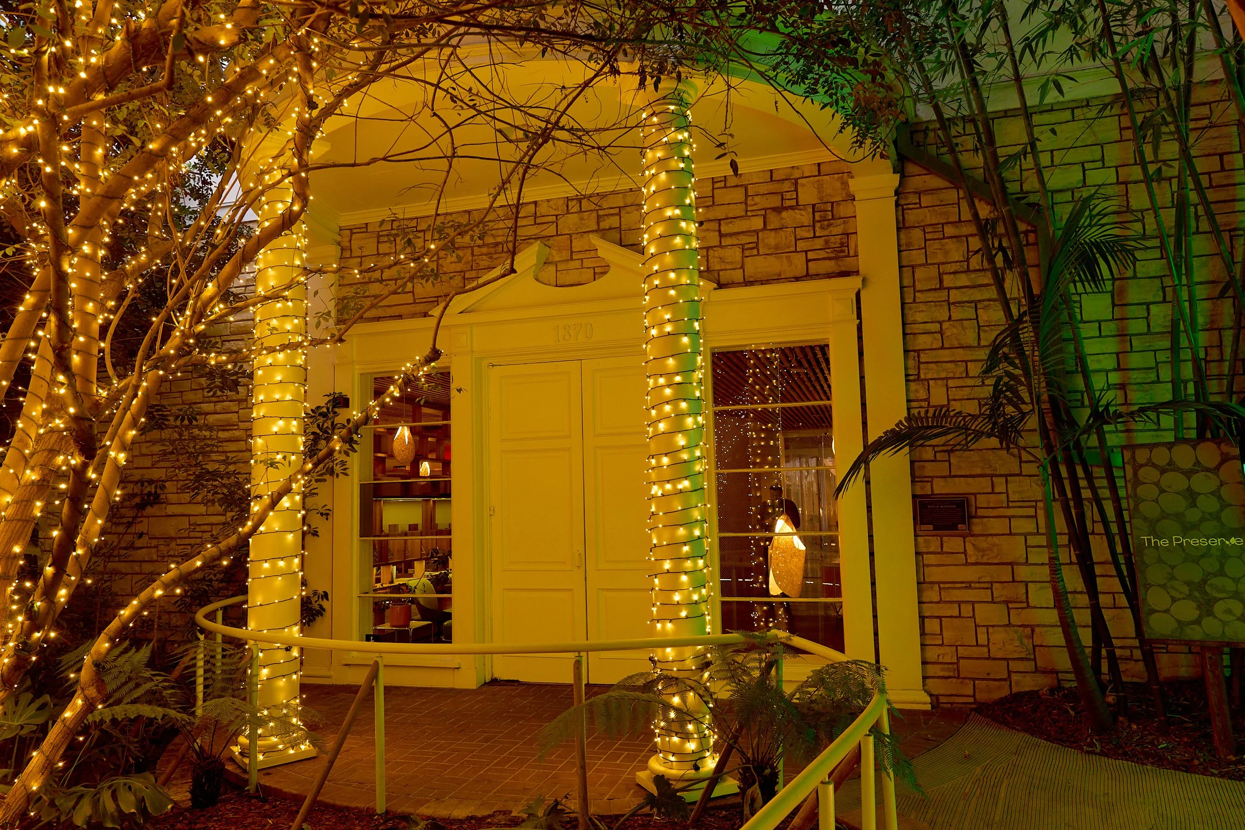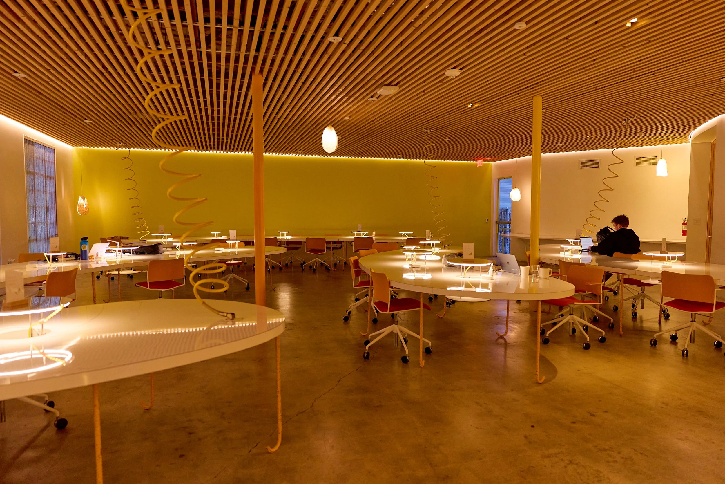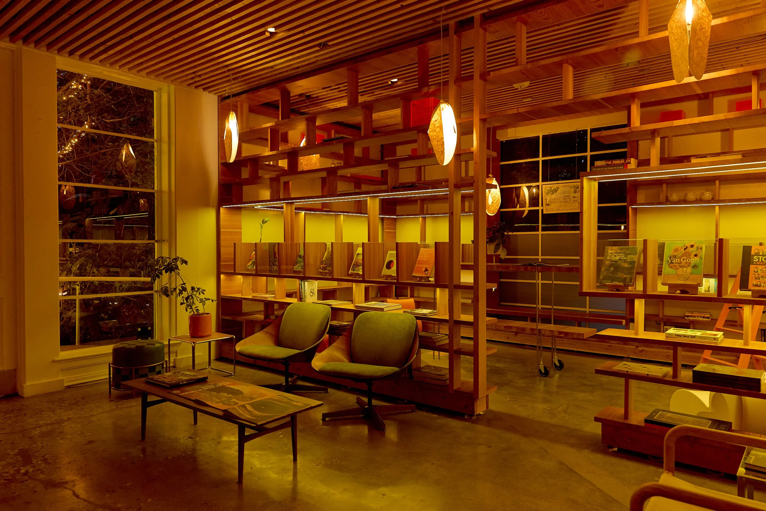 Two-acre creative campus designed by Spanish architect Jose Selgas (SelgasCano), integrated into a historic 1960s Paul Williams Colonial Revival office building. 50,000 sq ft landscaped garden 60 individual curved acrylic, freestanding garden studio office pods Restaurant and bar Tree-covered patio courtyard with fountain Auditorium Meeting rooms and breakout spaces Private offices On-site bookshop Interconnected pathways throughout campus Architecturally distinct: Mid-Century structure paired with contemporary Bauhaus-influenced design and futuristic acrylic pod installations Extensive natural light, layered outdoor environments, and multiple self-contained zones within one controlled campus setting.
