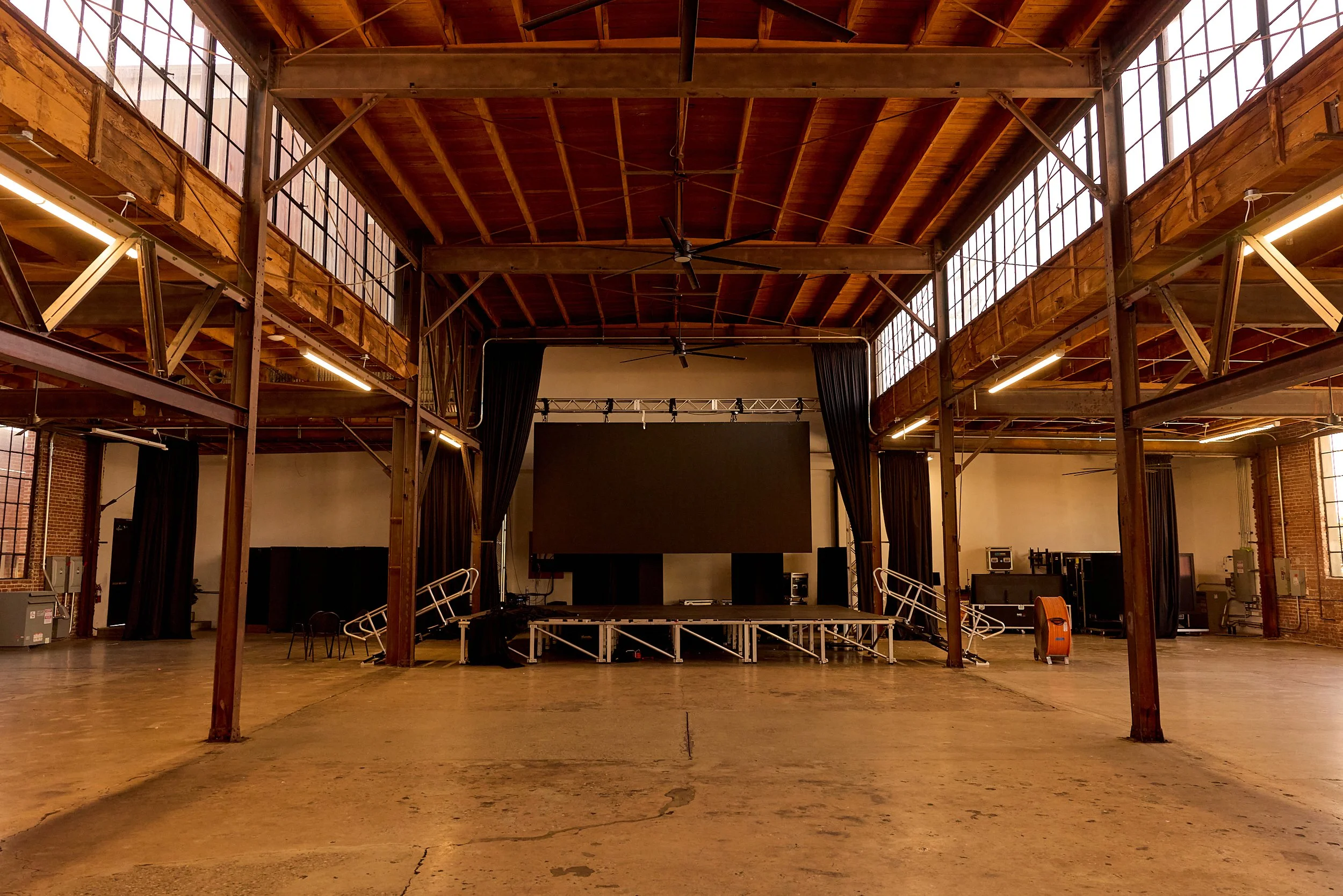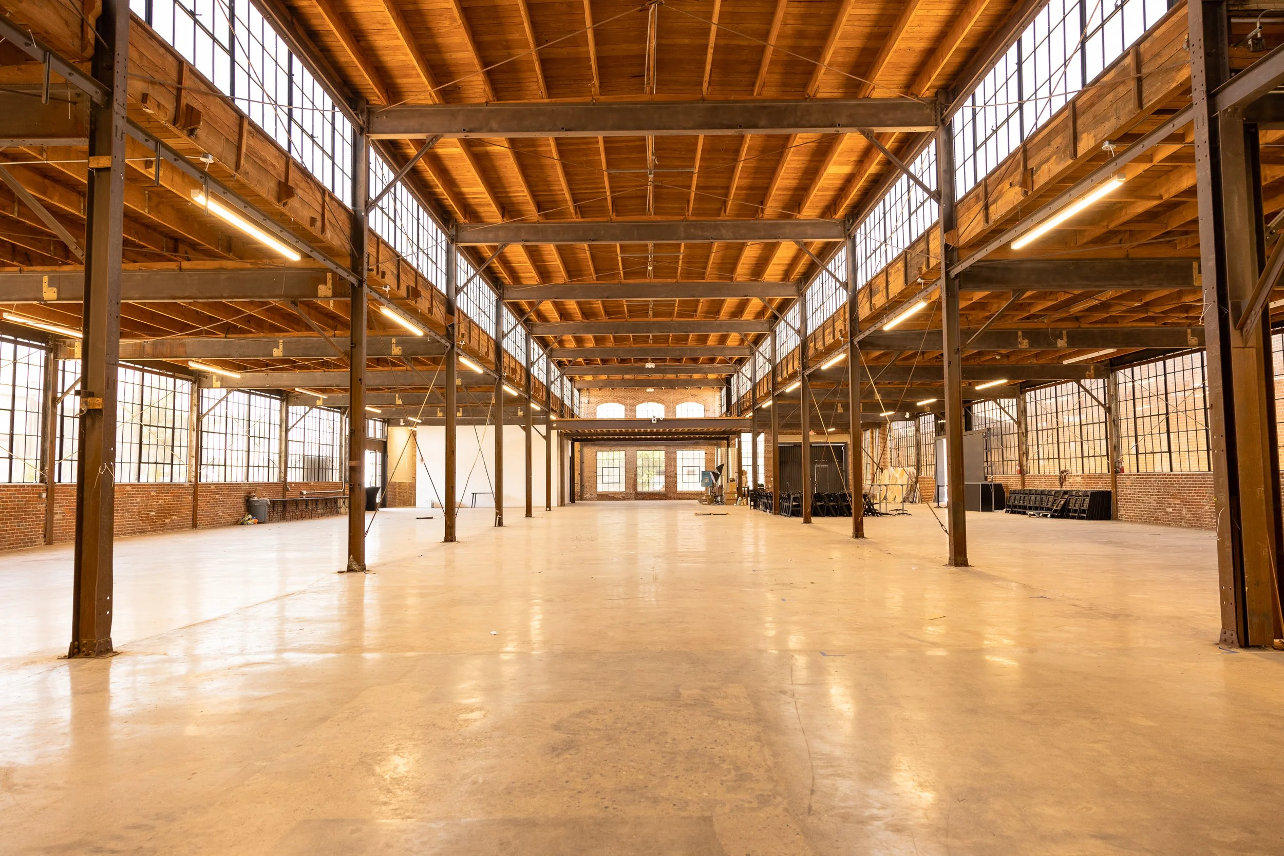 Campus with multiple buildings, multiple looks and parking for days 90,000 SF Property Ceiling Heights: 12'-22' Gated Parking Available (75+ Cars) Warehouse space is15k sq ft w/ a 2k sq ft mezzanine Event space 6300 sq ft 13k sq ft tech center Clean modern looks combined with old original warehouses, versatile property Available for film, TV, commercial, photo shoot projects, private events, pop ups, immersive experiences, brand activations and product launches, crew parking and base camp