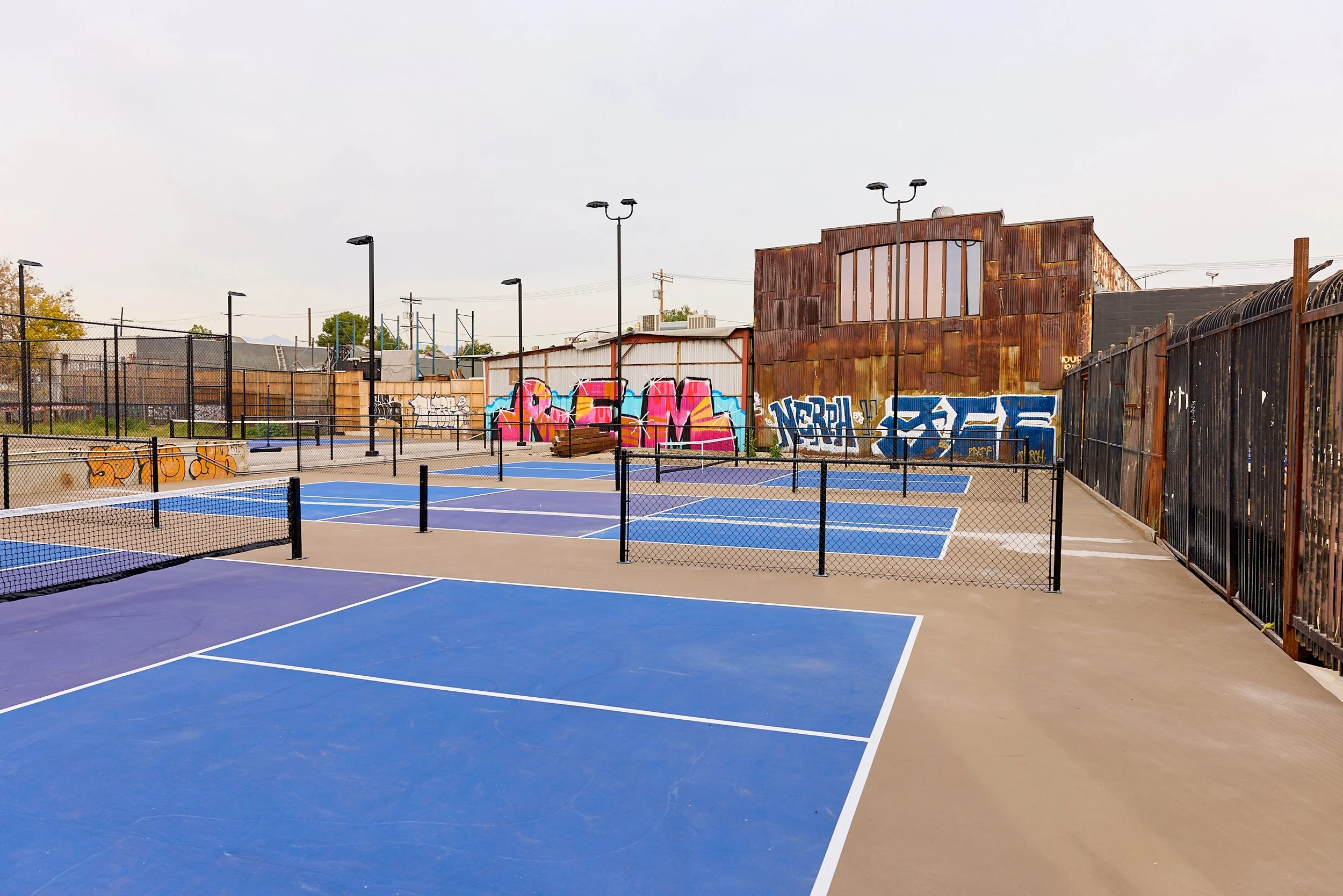 Former industrial warehouse turned fully functioning pickelball complex